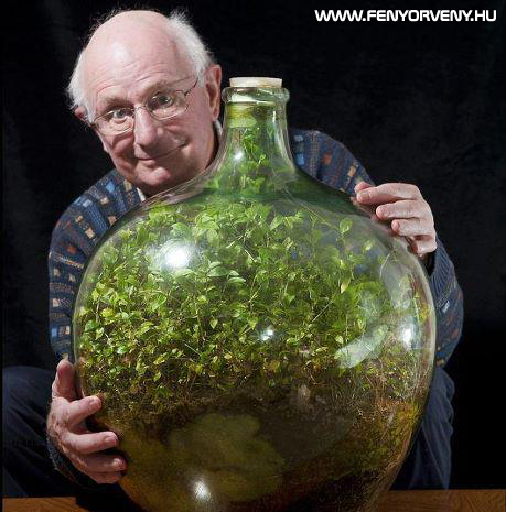 David Latimer, egy angliai amatőr kertész minden bizonnyal rekordot döntött üvegbe zárt kertjével. 1960-ban ültetett az öblös üveg belsejébe pletykákat (Tradescantia), majd 1972-ben, egy utolsó locsolást követően, hermetikusan lezárta az üveg száját. Azóta a növények teljes izolációban növekednek, az elpárologtatott, majd az üveg falán lecsapódó vizet újrahasznosítva.A földjükben élő baktériumok segítenek lebontani a növények elpusztult részeit, így segítve az apró ökoszisztéma egyensúlyának fenntartását. A növények a bomlástermékekből származó szervetlen anyagokat ezután újra képesek felvenni a talajból. Emellett a növények fotoszintéziséből származó oxigén egy részét a baktériumok elhasználják, a növények pedig az így képződött szén-dioxidot hasznosítják.