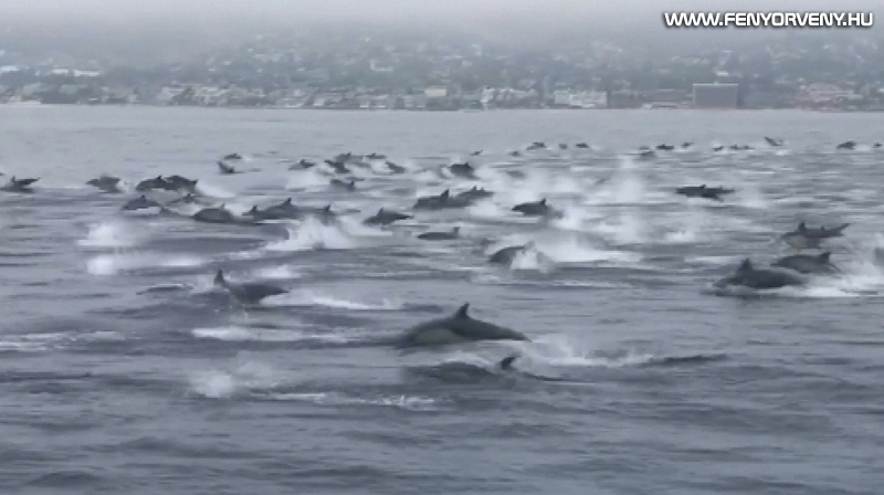 Egy óriási delfincsapatot videóztak le Kalifornia partjainál kedden, de a felvételek csak most, szerdán kezdtek el terjedni a közösségi médiában.