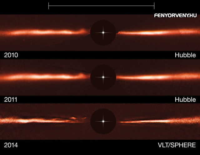 Az új képeken öt hullámszerű, a víz fodrozódására emlékeztető ív figyelhető meg a csillagtól különböző távolságokban. Miután a struktúrákat azonosították a SPHERE-felvételeken, a kutatók a Hubble-űrtávcső STIS (Space Telescope Imaging Spectrograph) műszerével korábban rögzített képeket is átvizsgálták, vajon azokon is látszik-e a porkorong furcsa hullámzása. Boccaletti és munkatársai nem csak azonosítani tudták a hullámokat a korábbi felvételeken, de az összehasonlításból az is kiderült, hogy a struktúra időben is változik: a hullámok mozognak, mégpedig nagyon gyorsan! A kutatócsoport egyik tagja, Christian Thalmann (ETH Zürich) elmondása szerint a Hubble-adatok újrafeldolgozása után már elegendő információval rendelkeztek ahhoz, hogy a furcsa struktúrák mozgását négy éven keresztül követni tudják. Kiderült, hogy a hullámok 40 ezer km/h sebességgel távolodnak a csillagtól.